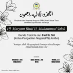 IKLAN DPRK ACEH BESAR – UCAPAN TURUT BERDUKA CITA ATAS WAFATNYA Hj. MARYAM BINTI H.MUHAMMAD SALEH