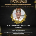 IKLAN WALI NANGGROE ACEH – UCAPAN TURUT BERDUKA CITA ATAS BERPULANGNYA KERAHMATULLAH KAMARUDDIN ABUBAKAR (ABU RAZAK)